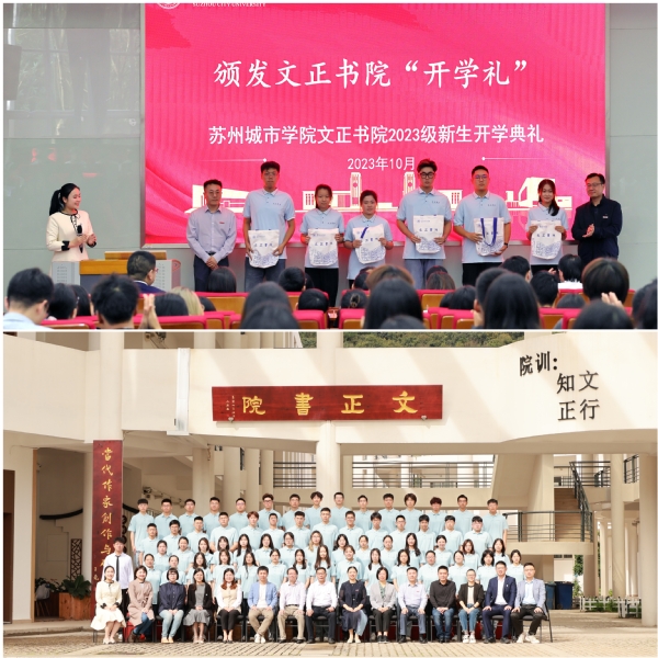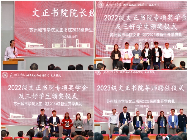 10月8日上午,我校文正书院2023级新生开学典礼在3号教学楼101室举行。苏州城市学院副校长吴昌政,教务处处长施盛威,城市文化与传播学院副院长、文正书院院长陈国安,光学与电子信息学院副院长陈蕾,城市文化与传播学院副院长涂小马,党委学生工作部(学生工作处、人民武装部)副部(处)长卞海勇,教务处副处长张毅驰,文正书院受聘导师、班主任、辅导员,及文正书院全体新生参加典礼。典礼由城市文化与传播学院朱琳主持。