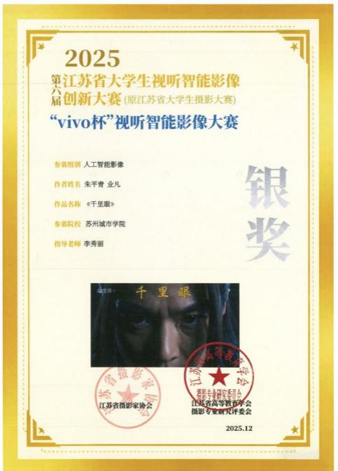 喜报!我院学子在第六届江苏省大学生视听智能影像创新大赛中斩获银奖