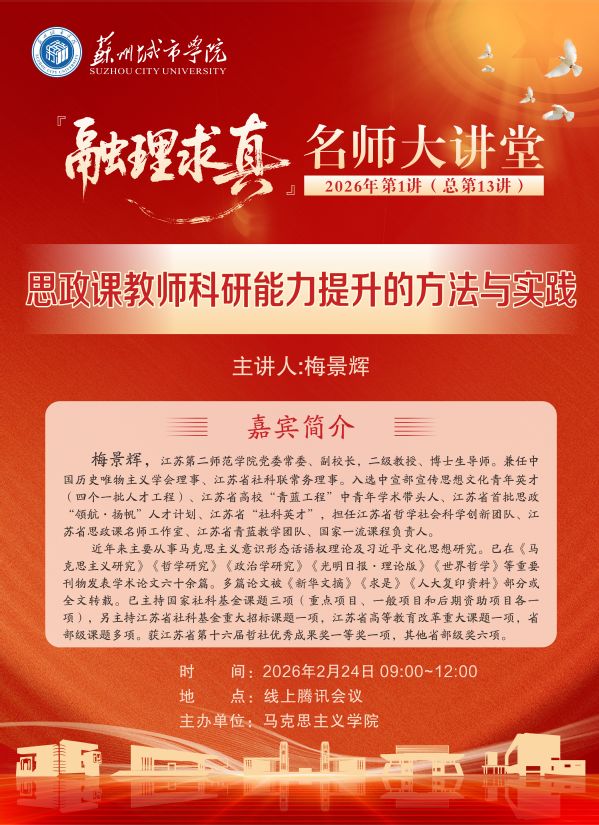 2025年12月17日,苏州城市学院“融城思政”品牌特色活动之《读懂苏州》系列讲座,在教学楼2-101教室迎来“...
