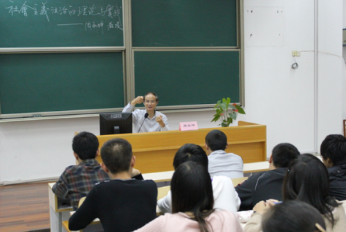10月20日下午6点,苏州大学王健法学院周永坤教授莅临我院,并在B101教室为我院学生进行了一场题为“社会主义法治的理论与实践”的专题讲座。