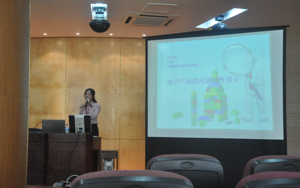 为了扩大学生的知识面,了解企业一线的先进理念,培养学生的创新思维,促进我院“应用型电子设计与制造技术实践团队招募计划”的发展,我院实验与实习管理中心特邀伟创力电子技术(苏州)有限公司负责可制造性设计技术方面的主管陈华丽高级工程师,于2011年10月19日下午,在学生活动中心202举办了关于DFM(电子产品的可制造性设计)的讲座。此次讲座由实验与实习管理中心主任黄新主持。