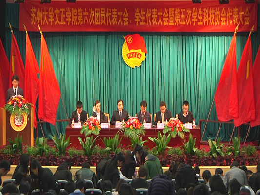 10月29日下午,我院第六次团员代表大会、学生代表大会暨第五次学生科技协会代表大会在学术报告厅隆重召开。出席此次大会的领导、嘉宾有:苏州大学团委书记王尔东老师、苏州科技学院天平学院团委副书记葛芳玉老师、文正学院常务副院长徐子良老师、文正学院党委书记吴昌政老师、学生工作处处长袁昌兵老师、校学生会副主席徐驰、校科协理事长夏旭宏。参加本次大会的正式代表214人,列席代表32人、特邀嘉宾28人。