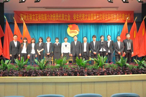 在祁素萍老师宣布审议通过大会选举办法和选举工作组成员建议名单之后,新一届候选人与代表们见面,由选举工作组组长陆佳斌同学主持选举新一届委员会委员。随后审议通过了共青团苏州大学文正学院委员会工作报告、学生会工作报告、学生科技协会工作报告,并审议通过院团委、学生会、科协工作章程。随后由学生工作处处长袁昌兵老师宣读表彰文正学院2011年优秀学生干部名单的决定。