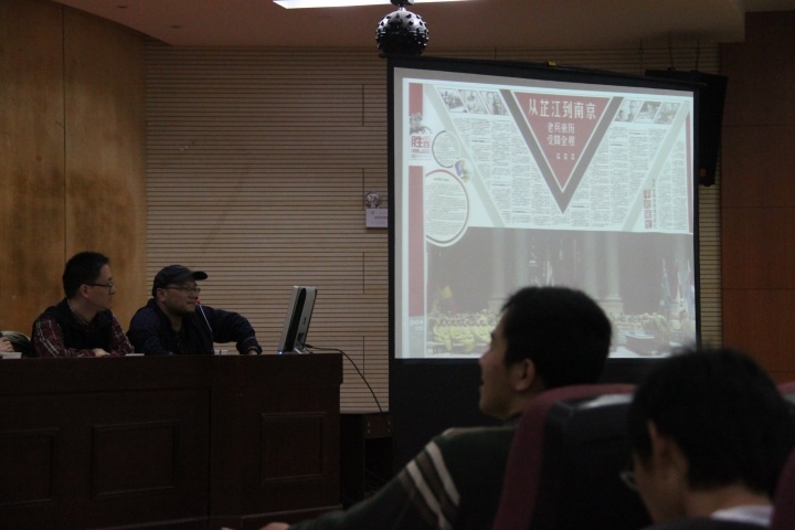 记者节前夕,恰逢苏州日报报业集团组织“百名记者走基层”大型活动,11月2日下午,《苏州日报》编辑团队一行五人来到我院,为新闻专业及学生新闻中心的同学做了题为“报纸背后的新闻生态”的讲座。这个编辑团队有着光荣的传统和辉煌的成绩,成员中有中国新闻奖获得者、总编室副主任陈震欧,中国地市报新闻奖优秀版面获得者、国内报纸设计先锋人物、视觉总监盛诚,江苏省报纸版面奖一等奖获得者、苏州市优秀新闻工作者、首席编辑周奉超等。他们对《苏州日报》的版式特色、编辑流程等进行了全面介绍,并通过互动,对同学们如何成长成为一名优秀的新闻从业者提出了宝贵建议。