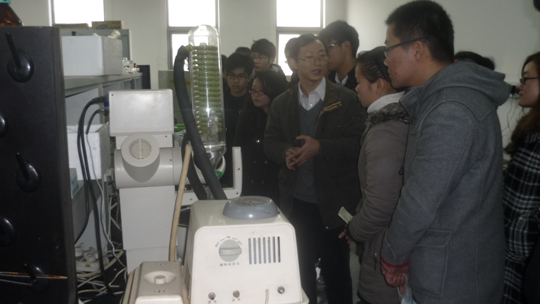 师生交流之后,在顾宏伟教授的带领与讲解下,大家重点参观了作为江苏省试验示范中心建设点的化学实验教学中心,对实验室的设备与仪器有了更加形象、直观的认识。
