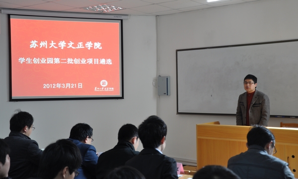 第二轮学生创业项目自申报以来,得到了广大同学的积极响应,先后收到了16项创业项目,经过评委认真评审,其中6个项目被确定为苏州大学文正学院第二期入驻学生创业园的创业项目(见附件)。