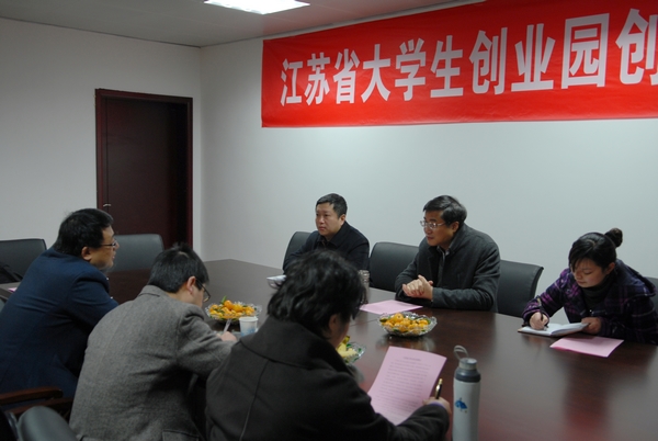 胡书记从江苏省大学生创业园的创办宗旨、目标定位、园区现状、驻园条件、入驻程序、管理模式、优惠政策及创业服务等方面向大家作了的详细介绍,重点介绍了目前30家驻园企业的基本情况和发展状况。他指出,大学生创业园是以扶持大学生创业为核心目标,以公益性、示范性、专业性为主要特征,以科技研发、文化创意产业和现代服务业为主体,搭建集创业教育、创业实践、创业孵化、创业服务等功能于一体的创业平台,通过举办各种培训与咨询以提高创业者的各种技能,促进企业快速成长与独立经营。他还就我院一行关心的项目评审、日常管理、资助形式、服务指导方式、营业执照办理、协议签订、企业风险规避等问题进行了深入交流。