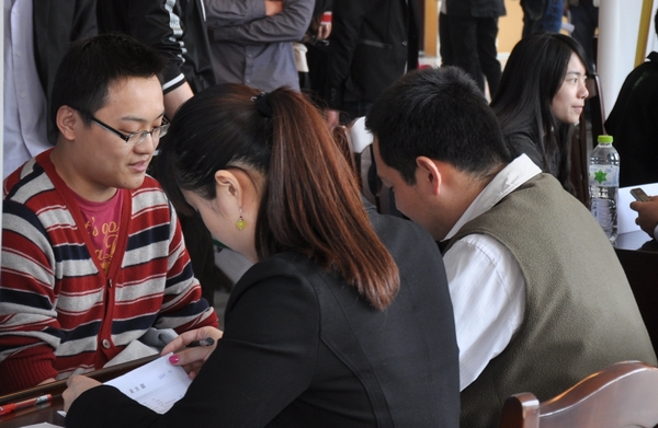 我院2012届及2013届毕业生参加了招聘会。同学们准备充分,提前复印了自己的毕业生推荐表、获奖证书、资格证书,精心制作了个人简历、求职信等资料,并对用人单位的需求提前做了深入细致的了解,部分同学当场和用人单位签订了就业意向。