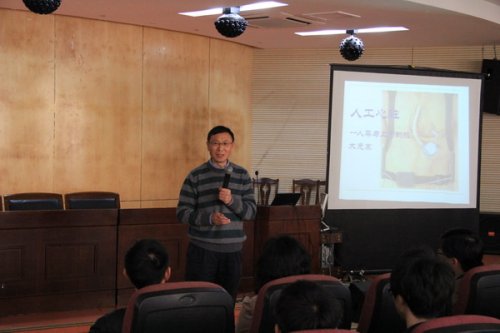从最早心肺机的使用使开心手术成为可能到1966年首个“心室辅助装置”植入成功,从最初第一代只能模仿心脏动作到第三代追求功能、采用非滑动轴承,人工心脏的发展艰辛、曲折,但步步踏实、成果颇丰——这是人类与上帝的竞赛。陈教授用轻松的语言把讲座知识囊括其中,幽默却不失严谨。现场许多听众来自我院机械工程专业的学生,他们对于“人工心脏”这一概念已有初步的抽象了解,陈教授此次带来的对“人工心脏”具体、形象而不失科学性的描述更是将他们的注意力全部集中。