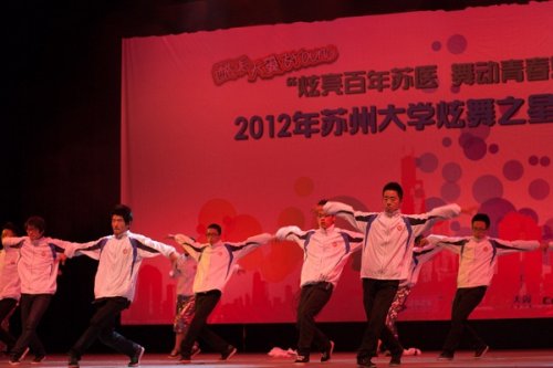 4月21日下午,苏州大学炫舞之星舞蹈大赛暨献礼百年苏医活动在独墅湖影剧院隆重举行。本次大赛以“炫亮百年苏医,舞动青春魅影”为主题,由党委宣传部、学生工作部(处)和校团委主办,校学生会承办。比赛共有22支学院(部)队伍参加,每支队伍用自己的形式诠释舞蹈,形式新颖,充分展现学院风采,体现青春气息。 Fly In Dance舞协代表我院参加了本次比赛,舞协成员们于21日上午9:30抵达独墅湖影剧院,进行了简单的彩排。下午2时整,比赛正式拉开帷幕。作为整场比赛的第一支上场队伍,Fly In Dance舞协身着院服表演了精心准备的街舞,动感十足,炫丽无比,赢得了观众的阵阵掌声与欢呼。 比赛采用比分排名制,共分为专家评分、大众评分以及网上投票评分三个部分,由学校相关老师以及校外知名人士担任评委,以期打造一个公平、公正的比赛平台。三小时激烈的比赛过后,电子信息学院《Extraterrestrial》和金螳螂建筑与城市环境学院《僵尸来袭》荣获一等奖,我院FlyIn Dance舞协《With You Keep Me In》则获得“最具魅力奖”。 (学生工作处)