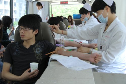 5月4日,是中国共青团成立90周年暨“五四”运动93周年纪念日,我院团委联合苏州红十字会在学生活动中心组织开展了一场“我为青春献热血 传承五四报国志”无偿献血活动。 中午11点半,献血活动在学生活动中心104准时开始。团委各干事负责登记事宜,志愿献血的同学们在工作人员的指导下,有序地按步骤完成了献血前的程序。先是填写个人详细资料,再拿身份证登记,然后由苏州红十字会的工作人员对志愿献血的同学们进行血压测量,以及血型鉴定。最后,完成一系列的准备之后,符合献血要求的同学们便进入了最后的献血环节。