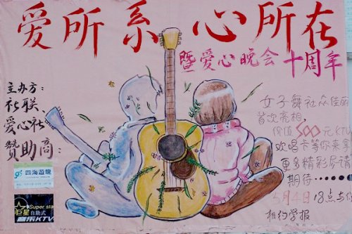 在对爱心社表现突出的成员进行颁奖过后,晚会将助残协会的手语表演搬上了舞台,此外还有曲艺社民乐团带来的乐器表演《烟花易冷》以及动感的歌曲串烧。抽奖环节过后,整场晚会在爱心社社员的大合唱《仰望星空》中圆满落幕。
