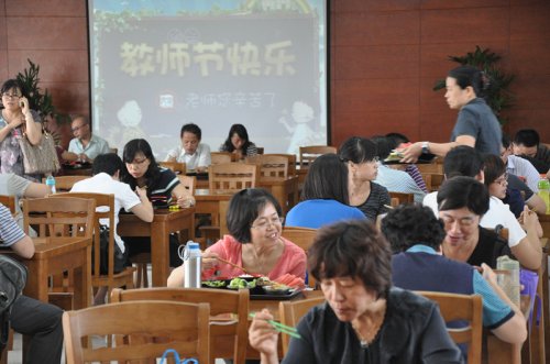 在十四年多的发展过程中,学校以及共建学院给予了我院很大的支持,特别是来自各个共建学院的教师在我院的人才培养中起到了重要作用;因此,我院不是把“服务学生,服务教师,服务共建学院”当作口号,而是将其很好地落实在平时工作的点滴中。从去年开始,在教师节当天,我院会组织学生通过鲜花和贺卡的形式向前来上课的老师表示慰问和感谢;同时,我院还免费向这些老师提供一顿丰盛午餐。