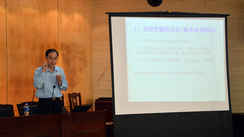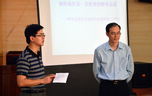 张裕龙先生现任苏州科瓴集团财务总监,兼任苏州大学商学院会计专业硕士生导师和专业指导委员会委员、江苏新广联光盘科技股份有限公司独立董事中国内审协会特邀教师、中国企业家联合会财务总监班兼职教师。他围绕“如何成长为优秀的财务总监”这个主题,分为七点进行详细阐述:“及时更新的会计/财务处理知识”、“掌握现行有效的税收政策”、“掌握相关的法律法规和财经案例”“安全的资金筹措和调配”、“资本运作知识和经验”、“宏观的视野/微观的持续执行力”以及“协调/社交能力”。他提到了“吸收合并”的概念,并鼓励同学们积累大量的法律和财经知识。他还例举了“国美电器及其控制权争夺”、美国分众传媒和恒大地产等的经典的财经案例,帮助大家更深层次的理解资本市场股权争斗的现象。