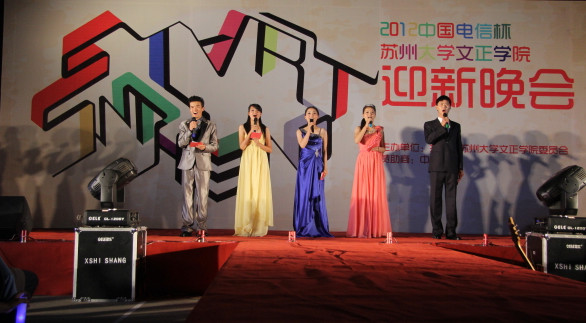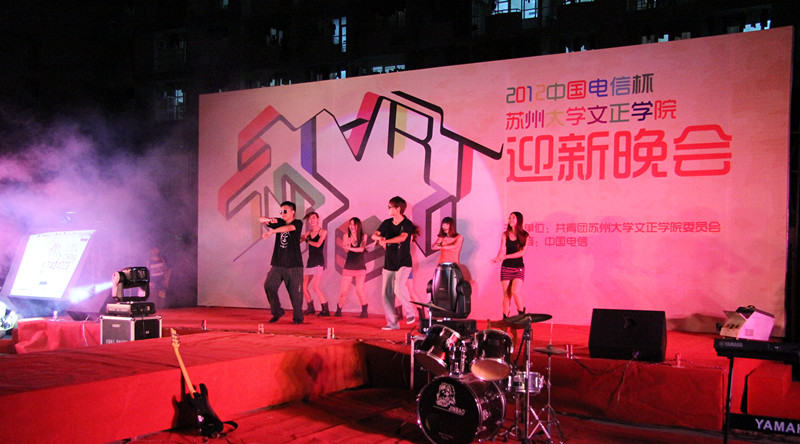 9月27日晚,由我院团委主办的2012迎新晚会——“Start In The End”如约而至、盛装登场。与以往大型晚会都在学术报告厅举行不同,这次迎新晚会搬到了户外,因而更使得大家热切期待。我院学生工作处处长卞海勇、副处长周炳忠、团委书记祁素萍、以及中国电信吴中分局的代表等作为嘉宾观看了整场晚会。