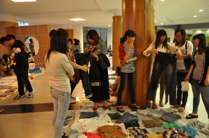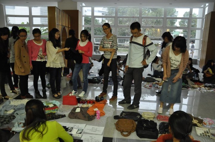 三天的跳蚤市场十分热闹,各摊主以大三大四为主,主要出售寝室中的闲置物品,以价廉物美为标准。各摊位前的货品琳琅满目,大到iphone、MP4,小到衣服、化妆品、书籍等,摊主们脸上挂着灿烂的笑容,抓住每一分每一秒竭力招揽客户。