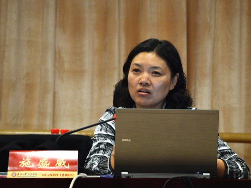 施盛威着重介绍了今年空乘专业的招生与教学情况。据介绍,我院开设空乘专业,就是瞄准高端民航服务和管理人员的培养;在2012年艺术类考生中我院共招收了120名本科层次空乘专业学生并将采用3+1培养模式(第一至第三年在校学习,第四年在航空公司实习)对他们进行培养。