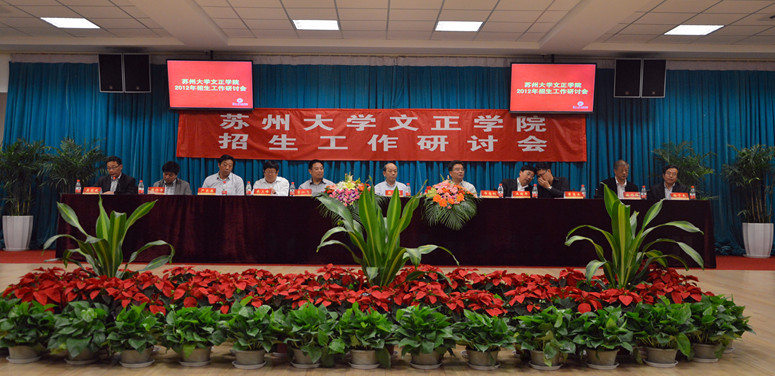 (翠文报记者:蒋文剑 冯丹丹)10月26日下午,我院2012年招生工作研讨会在新落成的艺术中心成功召开。来自省内各地教育局、招生委员会办公室(教育考试院)、生源地中学、苏州大学招生就业处的领导,我院院长殷爱荪、常务副院长徐子良、党委书记吴昌政、副院长施盛威、副院长蒋峰等招生工作领导小组成员以及参与2012年暑期招生工作的其他成员等参加研讨会。研讨会由院长助理袁昌兵主持。