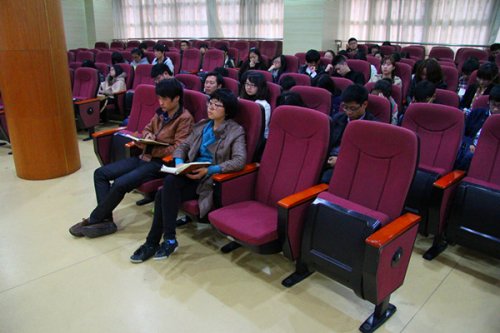 当谈到“新平台 新思路”的问题时,卞海勇指出带领好自己的团队是学生干部的工作关键。他还以我院干事在民生银行的工作经历为例,强调了独立思考的重要性,引起众人的思考。卞海勇老师在讲话中向学生骨干提出了几点要求:1、学生干部应养成独立思考的习惯,改变原来机械接受的作风。2、学生干部要在自我反省中总结工作,在不断提高自己工作能力的同时,使自己的团队能够更加协调高效地运作。3、学生干部组织会议时,应协调各方,确定时间地点,并做好会议记录,完善考勤制度,及时向指导老师汇报会议内容。