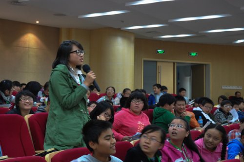 紧张的辩论过后, 全场进入互动环节,台上的辩手与台下的学生充分互动,围绕主题,喜迎十八大。
