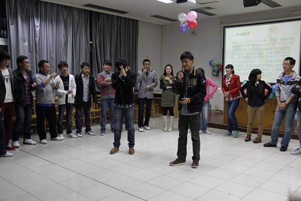 活动以传统的“自我介绍”游戏热身。随着“快速抱团”、“友谊之花”、“让友谊住我家”、“同舟共济”等游戏的依次展开,全场气氛不断热烈起来。最后的游戏“真心话大冒险”,把同学们的情绪瞬间推向了高潮。主持人宣布活动结束后,同学们仍意犹未尽,纷纷合影留念。