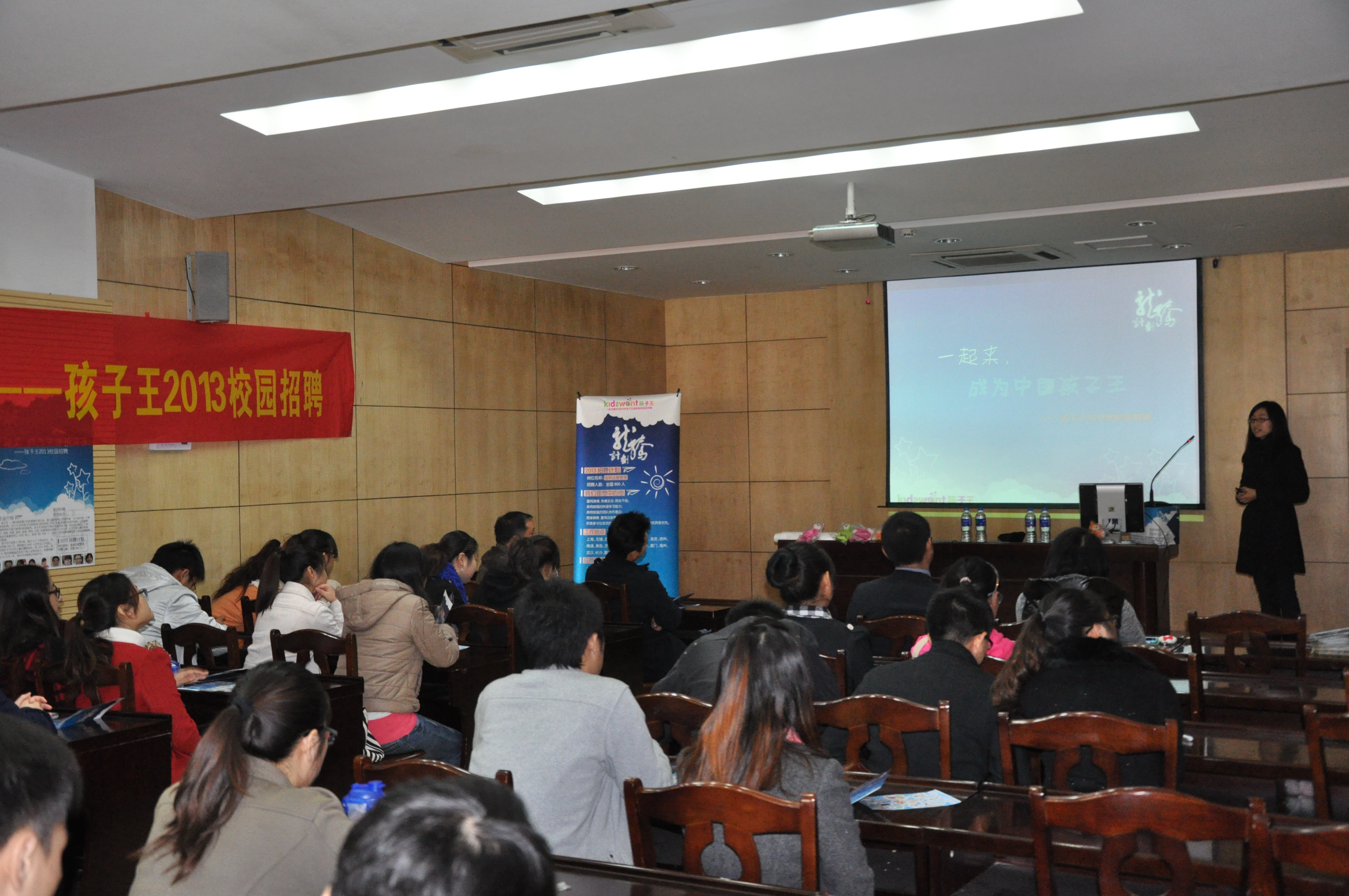 苏州大学文正学院2013届毕业生就业指导系列活动正有序的进行,2012年11月14日下午13:30我院再次举办了校园招聘宣讲会。此次参加宣讲的单位有东洋精密机械(苏州)有限公司和孩子王儿童用品(中国)有限公司,宣讲会由“公司自我宣讲”,“学生提问”,“面试咨询”三个阶段组成。