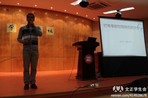 除了学习、校外经历,多位学长学姐在讲座中提到了友情的重要性。他们表示要珍视友情,这样在大学中才不会寂寞与无聊,未来的路也会越走越宽。“朋友是一生的财富”,10级光信息科学与技术专业的邱建同学如是说。