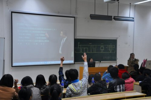 紧张的抢答环节结束后,艺术系同学的分数已稍稍领先于其他的系,场内的比分差距也逐渐拉开。随后,为了缓解紧张的气氛,全场进入了互动环节。场下的观众积极踊跃地参与其中,将场内气氛又推向了一个新的高潮。
