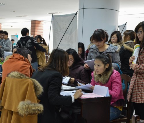 12月5日下午1点至5点,我院在学生活动中心一楼、二楼大厅举办了“江苏省百校联动就业活动——走进苏州大学文正学院”校园招聘会。本次招聘会共有参会单位85家,面向全院36个专业提供岗位1700余个,涵盖了销售、行政、人事、技术支持、教师、工程师等多个类别,旨在更好地帮助2013届毕业生了解就业形势,促进学生、学校、用人单位之间的交流合作。