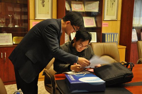 上午,省教育评估院副院长袁益民、专家徐有峰以及联络员汪华等在专家工作室进行资料核查工作。专家工作室由我院荣誉陈列室改设而成,里面展示了学院师生在各个方面、各个时期取得的成绩。专家们除了核查会计学专业建设相关纸质材料外,还通过我院的专业建设专题网站查询想要了解的其它资料及信息。室内的各种证书、奖杯也让专家从另外一个角度直观了解到我院的办学水平。