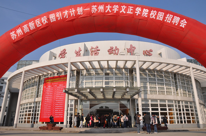 (翠文报记者:傅蓉 朱雅婷)12月12日,由苏州高新区人才市场和我院联合举办的“苏州高新区校园引才计划——苏州大学文正学院校园招聘会”在学生活动中心拉开帷幕。莱克电器股份有限公司、广州金逸影视传媒股份有限公司、农夫山泉股份有限公司(苏南大区)等31家企业参会,并带来850余个工作岗位。据统计,我院共有712名同学进场应聘。