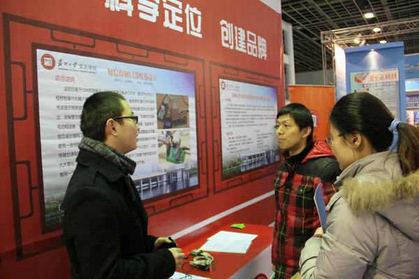 2012年12月27—28日,江苏省首届大学生科技创新创业成果(项目)交流会在南京国际展览中心隆重举行。由我院科研活动指导中心主任高志斌老师、招生就业处副处长周建军老师以及09微电子石润彬、10新闻陈珉洋两名学生共四人组成的团队携我院三个科技创新项目、一个创业项目参加了此次交流会。