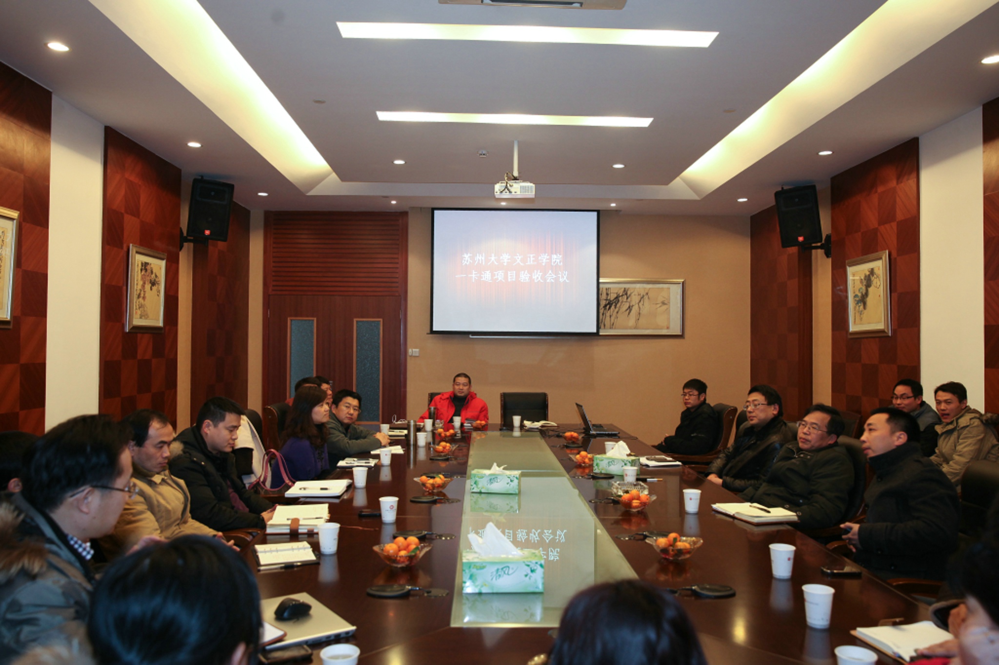 验收报告会上,冷飞介绍了工程进展及合同完成情况,栾仕喜介绍了一卡通在学院内的使用情况。目前校园内已基本实现了“一卡通”,一卡通广泛用于餐饮、图书借阅、机房上机、存包柜、超市、学风检查、课内点名、会议考勤、心协签到、事务中心签到、宿舍无障碍通道、水控、电控、自助洗衣机、短信平台、自助圈存机、网站查询、体育锻炼场馆等环节与场所。