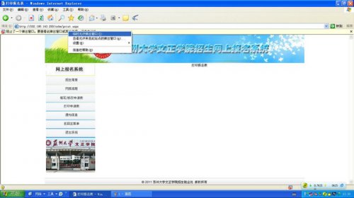 信息填写并提交后,请点击左侧的“打印申请表”,使用A4纸打印报名表(请设置浏览器允许弹出窗口,具体设置方法见后,建议使用IE 8.0)。报名表仔细核对无误后,在指定位置粘贴考生身份证复印件、普通高校招生艺术专业考试通知书复印件,并在现场报到时务必带上。
