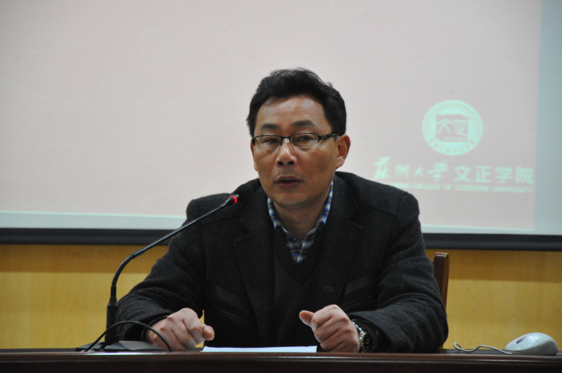 吴昌政传达了前不久召开的校党委十一届二次全体会议精神。他对校领导围绕苏大2012年度工作情况、2013年党政工作要点和相关重点工作等所作的重要讲话进行了介绍。他希望全体教职工联系我院工作实际,认真学习、领会和贯彻相关文件精神。