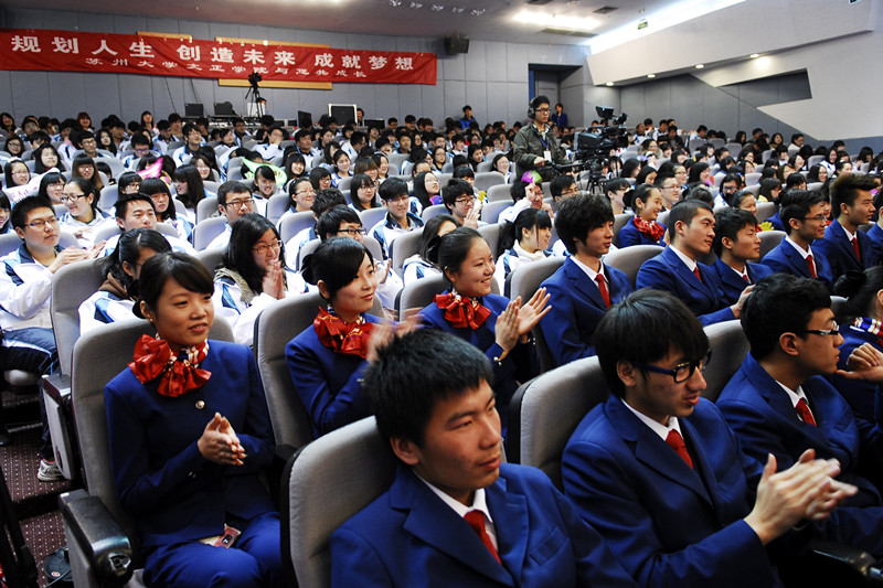 (记者 李鹏宇 陈怡 田亚) 3月23日上午,由苏州市电视台主办的“未来不是梦”大型职业生涯规划互动电视节目苏州大学文正学院专场在我院学术报告厅顺利录制。由中国苏商投资控股集团有限公司执行总监方东等五位企业家组成的企业家导师团和我院院长助理袁昌兵、“卓信出国”生涯规划师何立等四名咨询师组成的专家顾问团与我院2010级心理专业乔羊等5名选手及现场的近500名学生进行了互动,节目由苏州电视台文化生活频道记者卜雪梅主持。