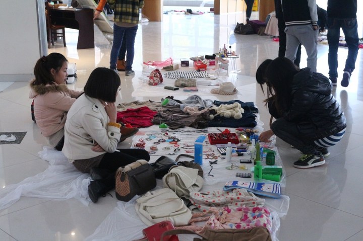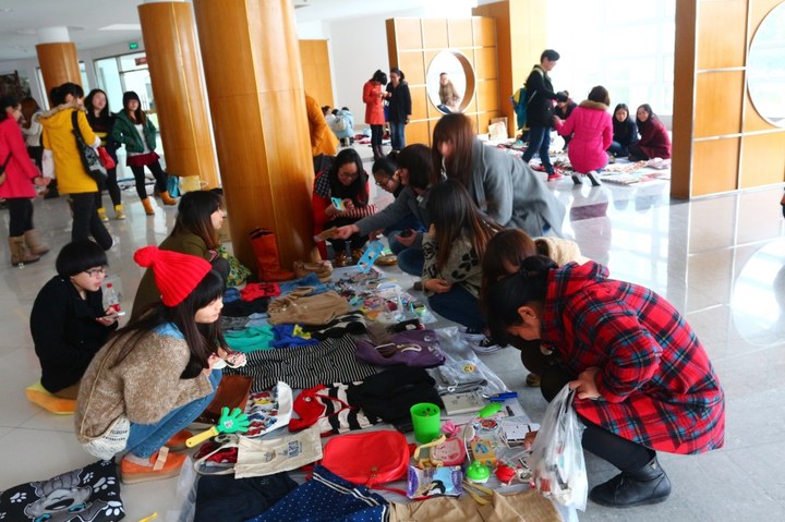 下午4点,活动中心俨然一派集市景象,大厅内人头攒动,各式商品琳琅满目。小到耳钉、发卡、笔芯,大到书籍、小圆凳、旅行箱包。“三人小杂铺”的摊主们说:“平时自己买了很多东西都是图一时之快,事后就后悔了。学校的跳蚤市场真不错,我们把东西拿出来卖掉,自己赚钱,需要的同学也受益。”