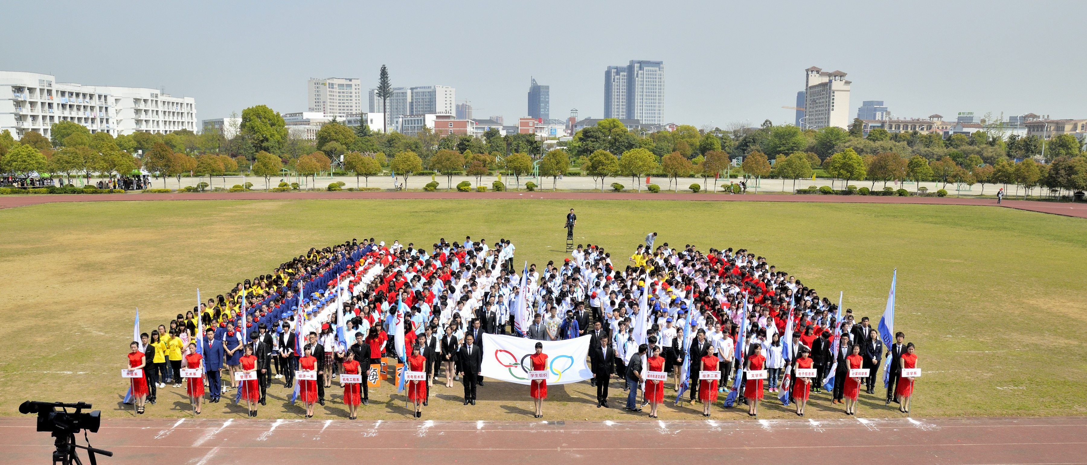 学生组织及12个系组成的方阵表演拉开运动会的帷幕。独具匠心的创意、天衣无缝的编排、绚丽多彩的表演让全场掌声雷动,特别是清一色空乘制服装扮的艺术系方阵走过主席台时,更是引起一片欢呼。