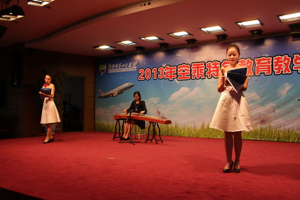 交流在文正学院的宣传片中拉开了帷幕,八名空乘专业同学上台展示了自己近一年在文正学院所学到的民航礼仪知识,将礼仪与T台展示结合在一起,标准的走台姿势赢得了在场师生热烈的掌声。金珺同学作为代表向在场的高中学弟学妹们详尽地介绍了文正学院。随后,他们通过新疆舞、古筝伴奏诗朗诵、歌曲演唱等精心准备的才艺表演感恩母校的用心培育。