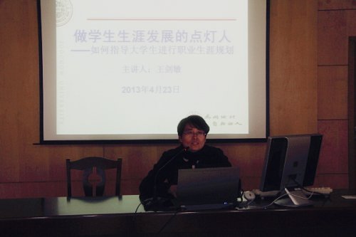 随后,王剑敏从高等教育大环境发生变化、90后大学生的生涯自觉现状等方面阐述了职业生涯规划的必要性,并对“什么是职业生涯规划”、“大学生为什么要做职业生涯规划”、“如何做好职业生涯规划”三个问题进行了详细的解释。她指出,职业生涯辅导是以解决问题为主的职业辅导,也是以关怀学生为主的生涯辅导。她向各位班主任分享了一些如何开展以“职业生涯规划”为主题的班会的经验,她建议可以用一些有趣的游戏如“生涯幻游”、“六岛环游”或者职业兴趣的小测试提高学生的参与度以及自我认知能力。