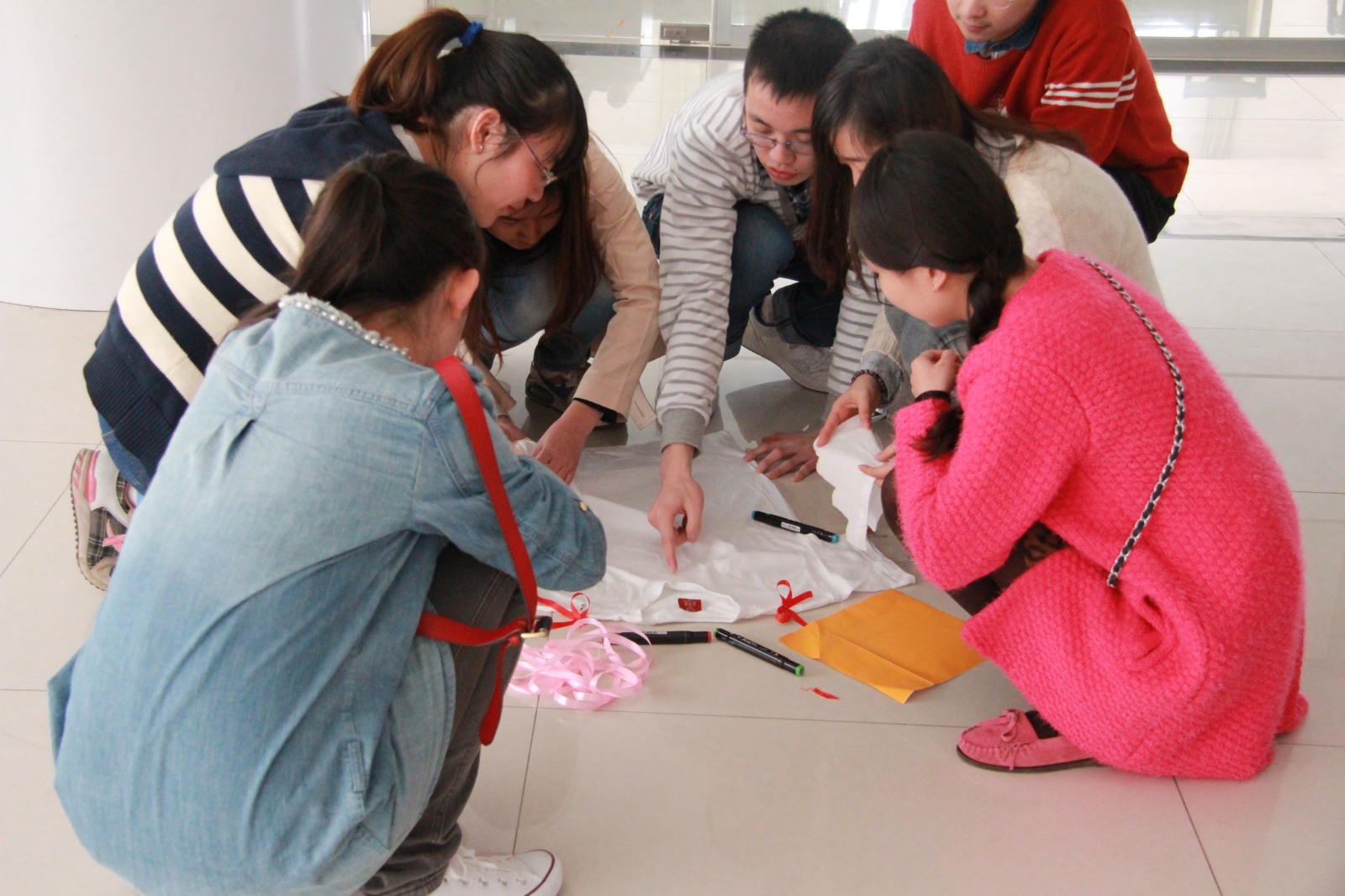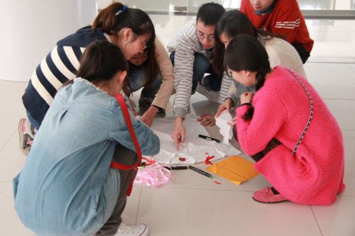 我院第三期青年政校培训户外拓展之衣服DIY活动于4月10日下午1点30分在学生活动中心三楼大厅举行。