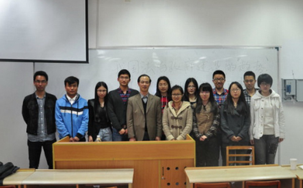 黄学贤教授首先向我们介绍了依法治国基本方略的提出及其发展过程,接着对于法治政府的推进提出了自己的看法,希望以后的政府机关可以做到“有权必有责,用权受监督,失职要责问,违法要追究,侵权必赔偿”。同时强调了当前社会管理创新当中要重点解决的几个问题,认为应以法制保障社会管理创新的实现并提出了几个行政法研究的新课题。最后与在座的学生们就一些问题进行了深入交流。