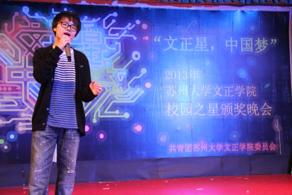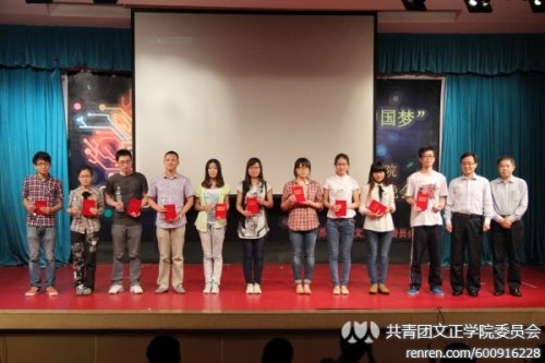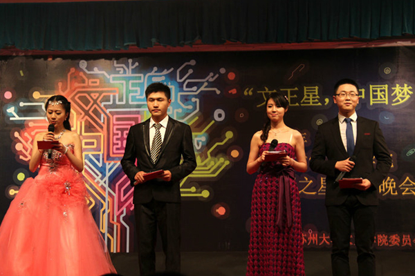 (翠文报记者:李蒙、徐晓晖/文 朱少堂/图)5月15日晚,由我院团委主办的以“文正星·中国梦”为主题的“校园之星”颁奖晚会在学术报告厅隆重举行。我院院长助理袁昌兵、学生工作处处长卞海勇以及各部门相关老师出席了本次晚会并进行颁奖。此次晚会在四个版块中分别颁发了包括科研之星、创业之星、文体之星、志愿之星、学习之星、励志之星、实践之星、管理之星在内的八个奖项,共有80名同学获奖。
