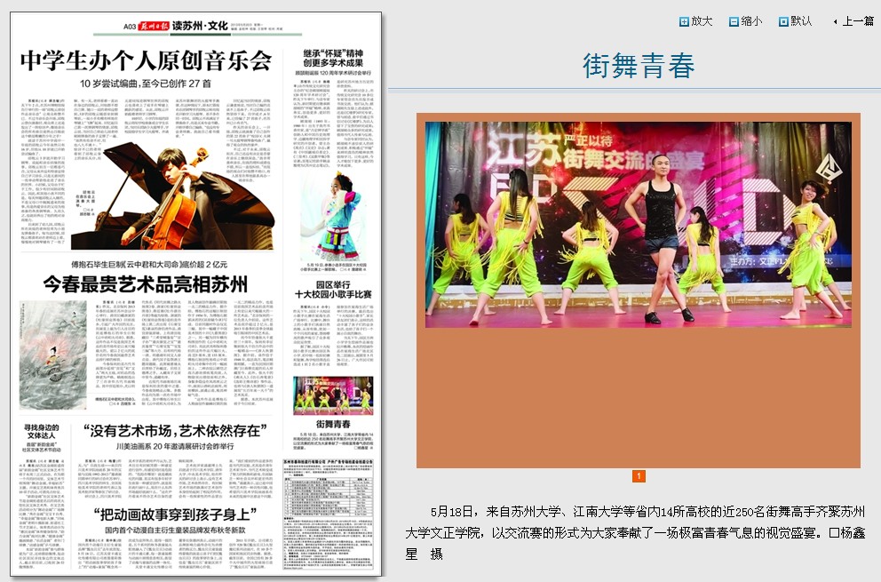 (翠文报记者:张晗玥/文 杨鑫星/图)近年来,街舞以其轻松随意、自由个性以及充满反叛精神而受到大学生的追捧。5月18日,来自苏州大学、江南大学等省内14所高校的近250名街舞高手齐聚文正校园,参加由我院主办的第四届江苏省高校街舞交流大赛,为大家奉献了一场极富青春气息的视觉盛宴。