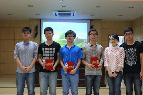 节目过后,便是激动人心的颁奖时刻。首先是在5月11日进行比赛的乒乓球赛男子组及女子组前三甲上台领奖;接下来颁发的是5月12日决出前三的羽毛球前三甲;随后是在5月11日晚进行比拼的象棋、五子棋比赛的颁奖。当宣布篮球赛前三甲时,欢呼四起。篮球赛是整个活动中持续时间最长的比赛项目。当冠军10热能与动力工程代表从颁奖嘉宾手上接过属于他们的篮球奖杯时,脸上的笑容以及眼神中的坚毅仿佛在诉说着这是他们用汗水换来的荣耀和骄傲。之后是当晚知识竞赛的冠亚季军以及班级团体积分前三名的颁奖。魏秋江、何玉及光电技术系团总支、学生分会主席邱建担任颁奖嘉宾,分别为获得一等奖的12光信息科学与技术、二等奖的12热能与动力工程及三等奖的12电子信息科学与技术颁发了奖杯、证书,并合影留念。