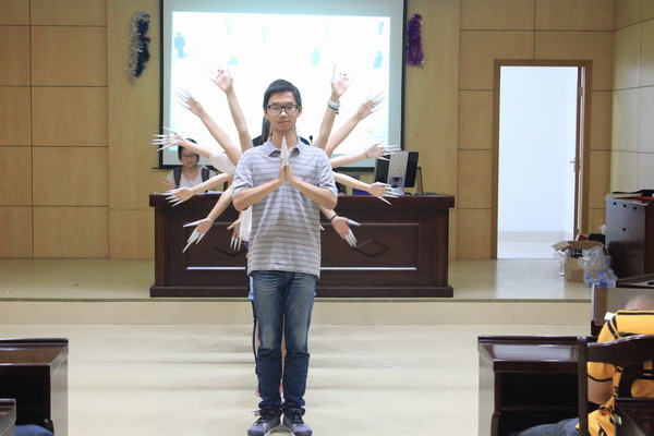 在等待总分排名成绩的间隙,各班级代表为大家奉献了精心准备的节目。12电子信息科学与技术、12热能与动力工程、12测控技术与仪器、12光信息科学与技术四个班级的《千手观音》节目掀起了全场的高潮,赢得了大家热烈的掌声。