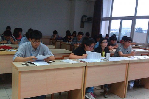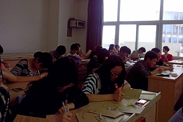 同学们认真地写着祝福贺卡