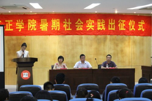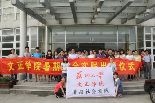 6月21日下午4:00,我院2013年暑期社会实践出征仪式在活动中心201顺利开展。苏州大学团委副书记肖甫青、我院院长助理袁昌兵、团委书记祁素萍以及团委副书记袁艳作为嘉宾出席了出征仪式。