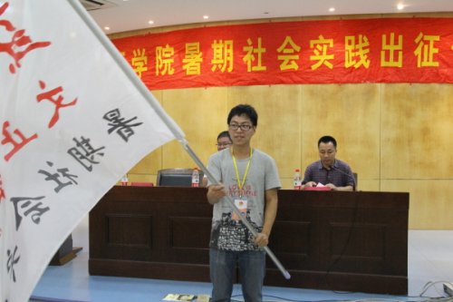 出征仪式邀请了2012年暑期社会实践优秀代表冯钰杰和2013年暑期社会实践团队代表沈瑶发言。他们分享了团队组建及确定课题的经历。冯钰杰指出应合理分工、团结协作,努力发挥每个成员的专业优势;沈瑶则表示会再接再厉,不畏苦难,努力挥洒青春的汗水,与实践梦想同行。