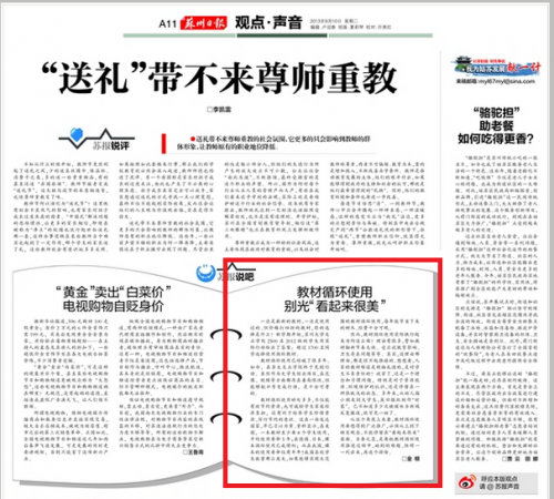 教材循环使用已经喊了很多年。如今,在苏大文正学院终于见到行动。虽然作为大学生创业项目,在范围、规模等方面都存在着局限性,但能够把口号变成行动,是十分可贵的。